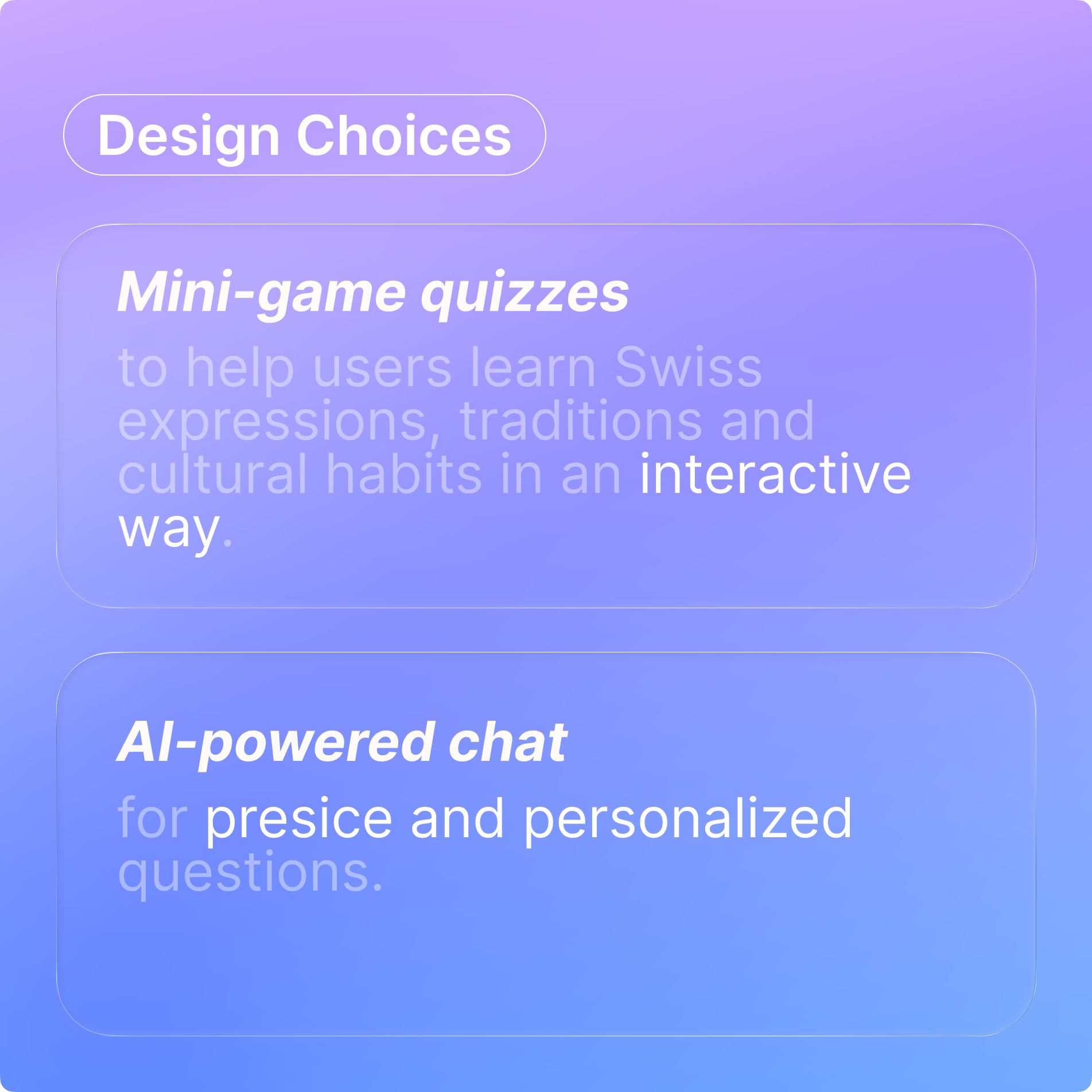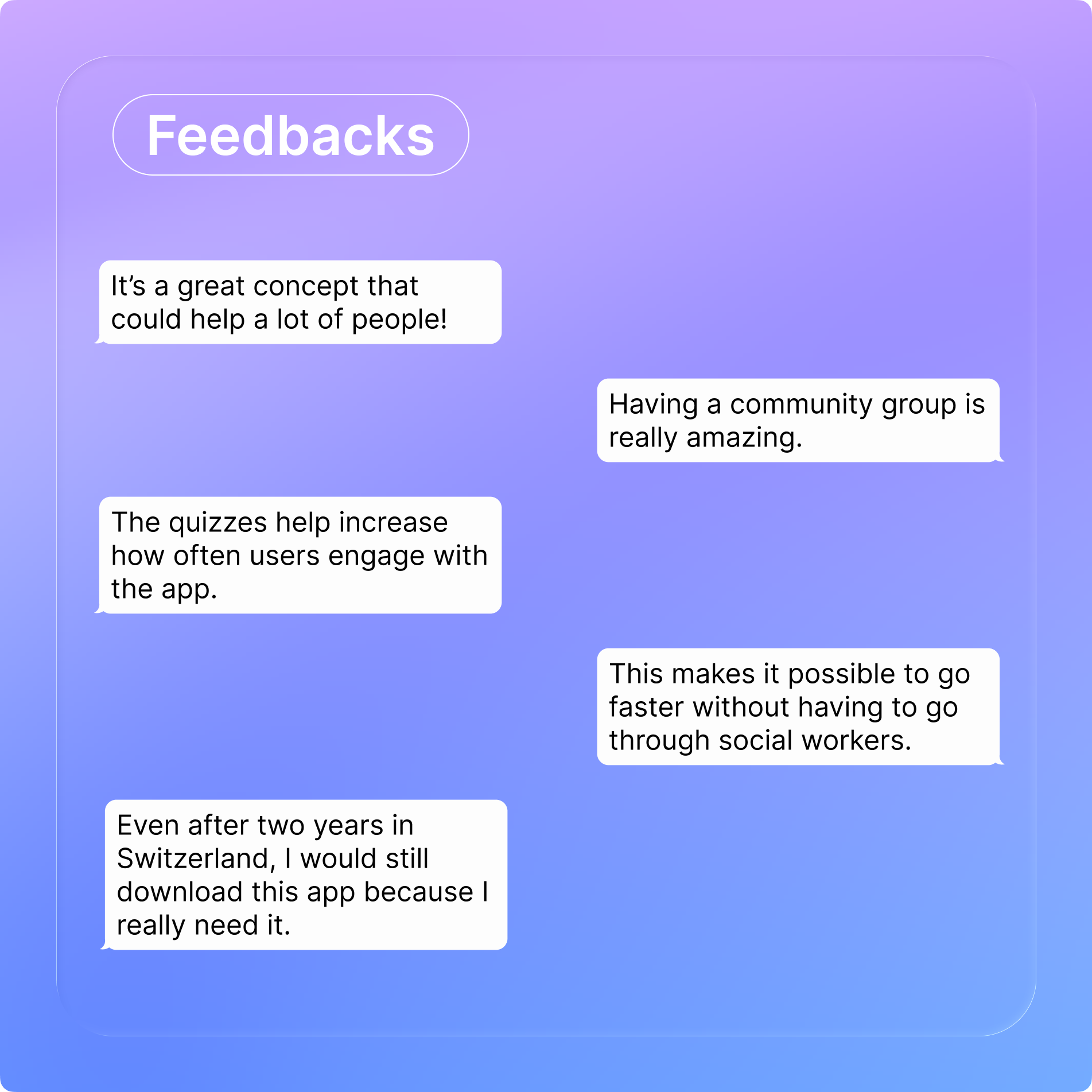 By combining accurate information, personalization and a culturally mindful design, inSwiss acts as a bridge between newcomers and Swiss society, helping them feel informed, welcomed, and supported.